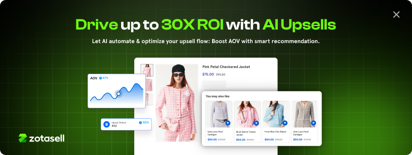 Zotasell is an AI-powered upsell & cross-sell app that boosts your AOV & revenue. Automatically recommend the right products across Product Page, Cart, Popup, Thank You Page and Post-Purchase Email. Adaptive widgets match your store design, real time inventory synced & continuous optimization.